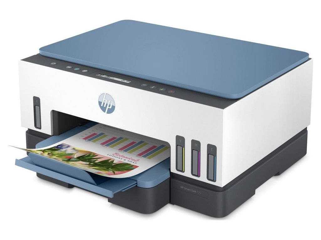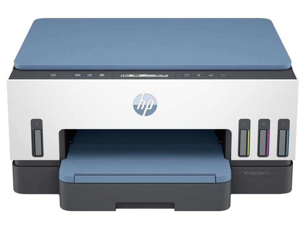 HP Smart Tank 725 All-in-One - Multifunkční tiskárna - barva - tryskový - plnitelný - Letter A (216 x 279 mm)/A4 (210 x 297 mm) (originální) - A4/Legal (média) - až 15 stran/min. (tisk) - 250 listy - USB 2.0, Wi-Fi(ac), Bluetooth