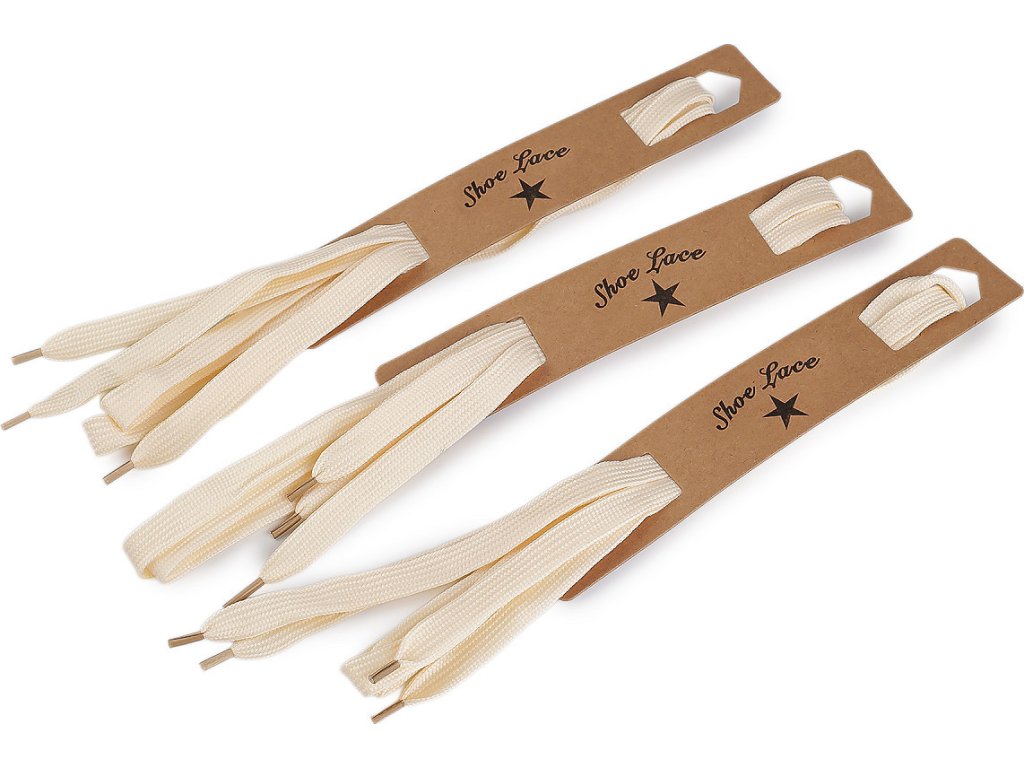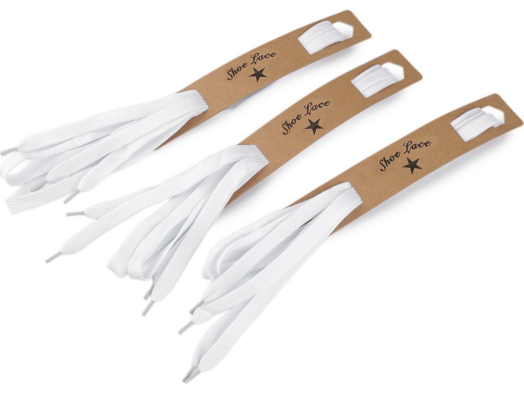 Ploché tkaničky jsou pevné, zakončené koncovkou dlouhou 10 mm. Jsou ideální pro každodenní použití do vycházkové i sportovní obuvi. Jsou perfektní volbou, když chcete poskytnout svým botám nový vzhled nebo potřebujete náhradní tkaničky při opotřebení těch původních. Prodávají se na papírové visačce s otvorem na zavěšení na prodejní stojan.