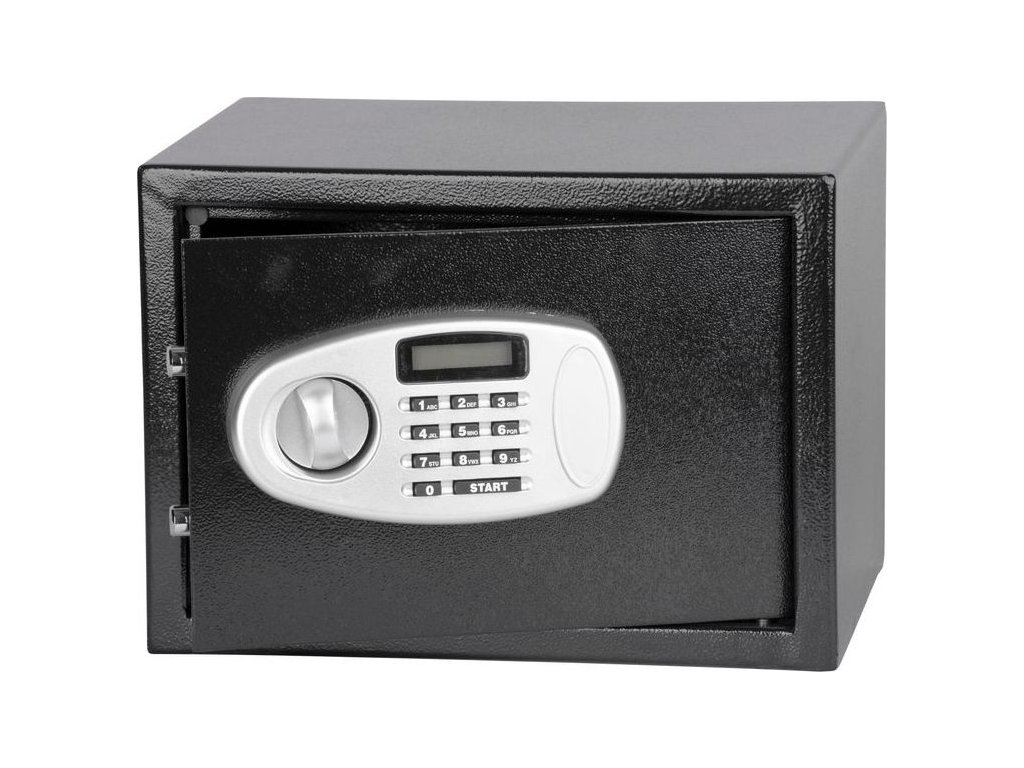 Otevření trezoru pomocí číselného kódu. Elektronický zámkový systém je navržen pro vysokou bezpečnost a snadnou provozní činnost. Je vybaven mechanickým zámkem pro bezpečné a rychlé otevření. 3 až 8 digitálních kódů nebo nouzový klíč. Rozměry vnější 230x350x250 Rozměry vnitřně 245x345x190 Hmotnost 10,5 kg Poličky 1