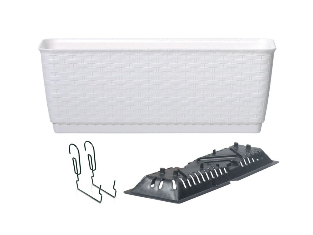 Kvetináč RATOLLA Case PW 500, biely, s podložkou, s vešiakom na zábradlie