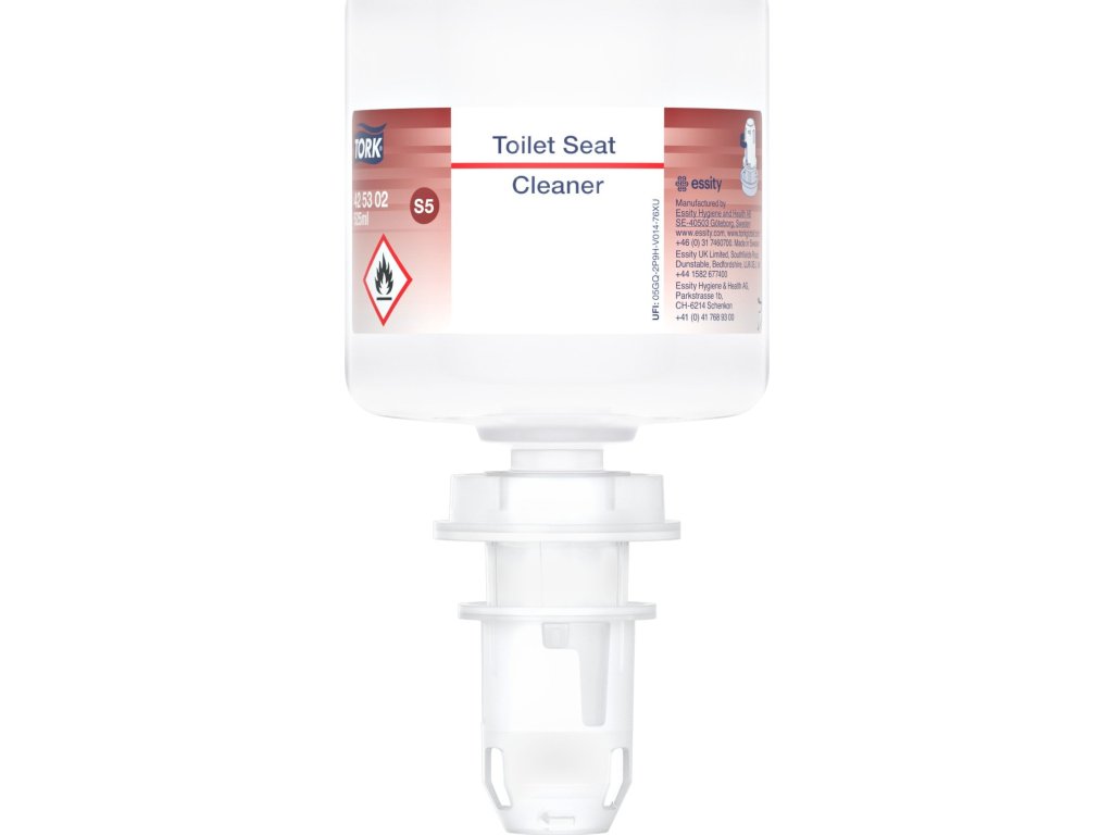 Tekutý čistič Tork Premium na toaletní prkénka, jednorázová láhev včetně dávkovací pumpičky. Nyní v balení 525ml.
