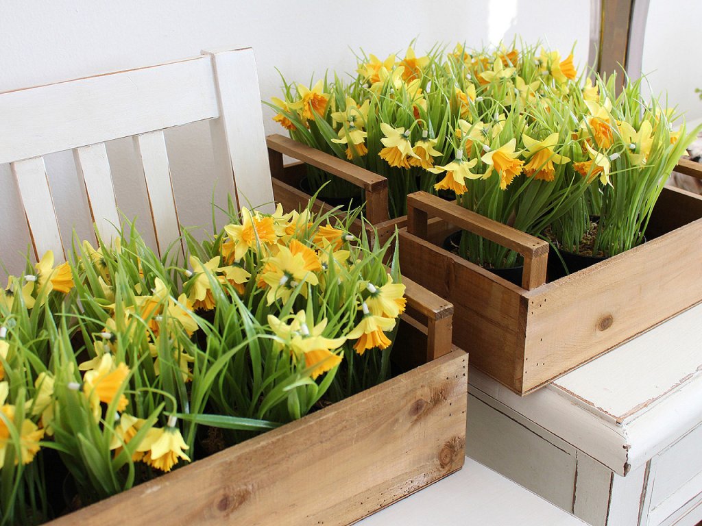Umělé narcisy v květináči