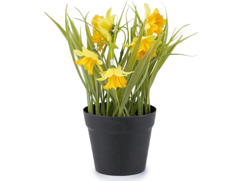 Umělé narcisy v květináči mají na rozdíl od živých mnohem delší životnost. Během jara a velikonočních svátků zútulní každý interiér. Květináč má dobrou stabilitu. Průměr květu je cca 4,5 cm, jeho délka je cca 3 cm. Průměr květináče je 9 cm, jeho výška je 7,5 cm.