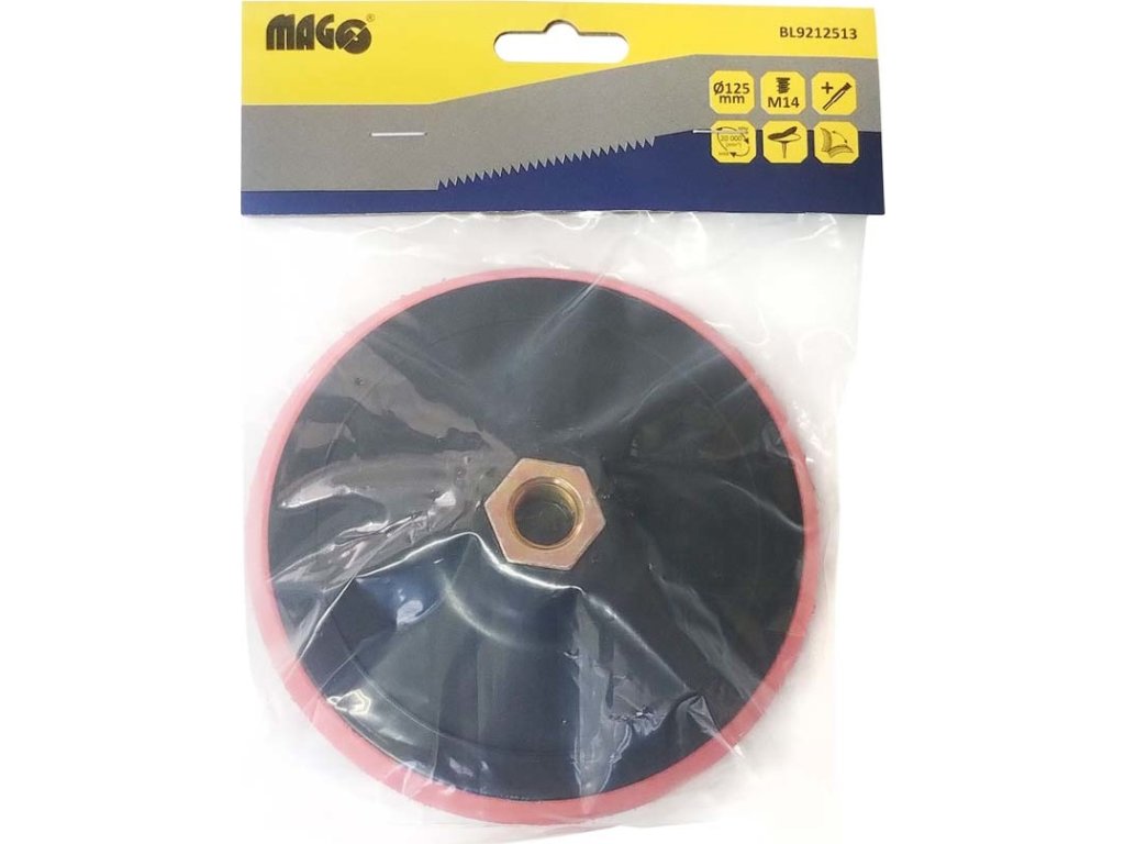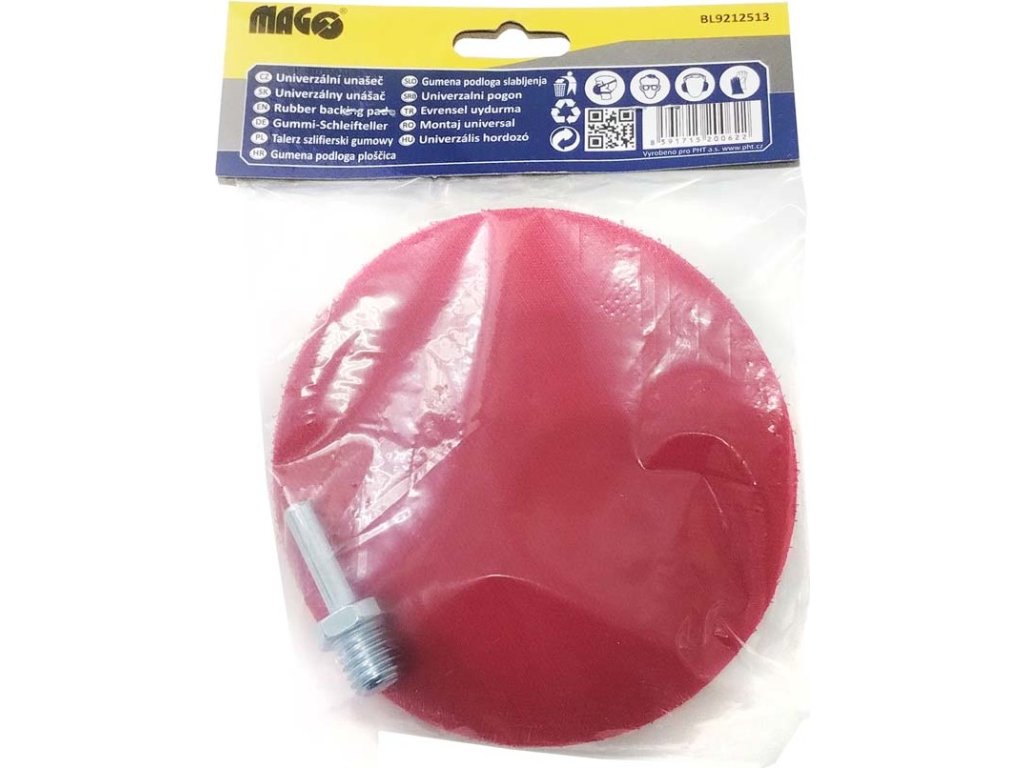Kruhový nosič brusného papíru s povrchem pro upevnění brusiva na suchý zip. Nosič lze aplikovat v úhlové brusce montáží přímo na vřeteno úhlové brusky (závit M14), nebo pomocí stopky, která je přiložena v sadě - do vrtačky.