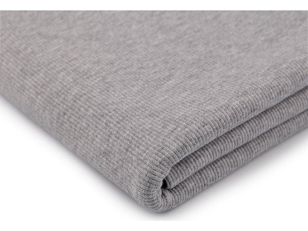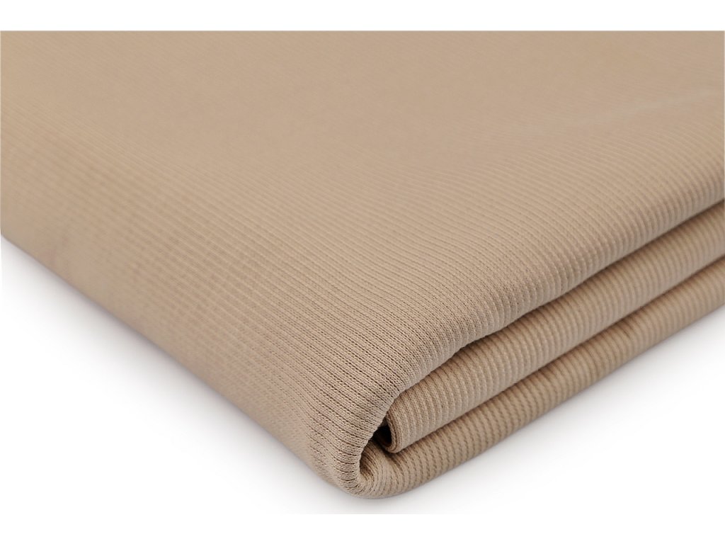 Jemně žebrovaný bavlněný úplet je dostatečně pružný a zároveň i příjemný na dotek, což zajišťuje maximální komfort při nošení. Má tvar tunelu - není střižený. Žebrovaný úplet je ideální pro výrobu přiléhavých oděvů, jako jsou trička, tílka, šaty, roláky nebo legíny. Jeho vlastnosti oceníte i při šití sportovního oblečení, kde je klíčová volnost pohybu. Je vhodný také na nastavení pásu těhotenských kalhot či sukní.