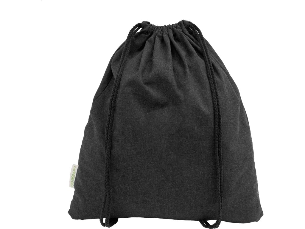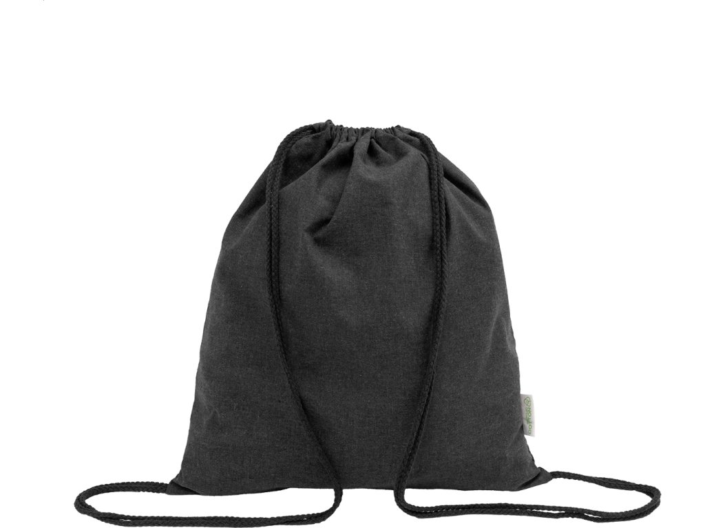 Vak se stahovací šňůrkou ze 70 % recyklované bavlny a 30 % polyesteru RPET, 140 g/m². S výrazným štítkem z recyklované bavlny.