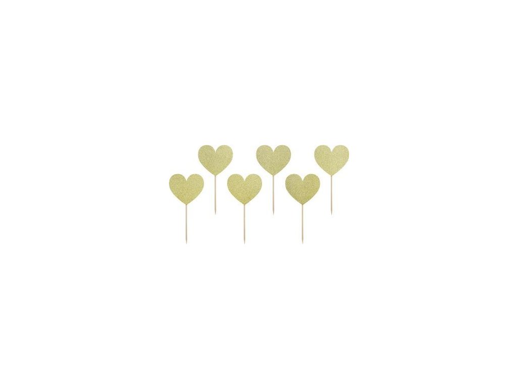 Balení obsahuje: 6 kusů zlatě glitrovaných papírových srdíček na špejli.