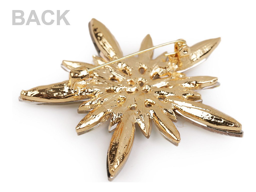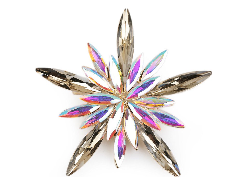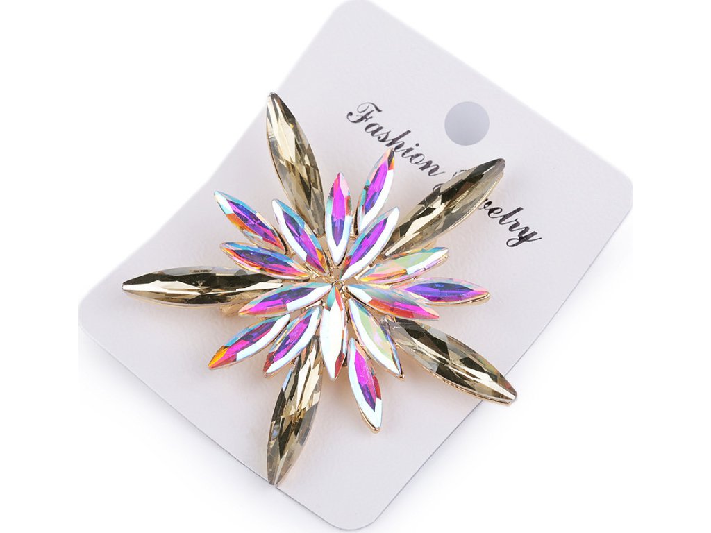 Třpytivá brož vločky je naprosto úchvatná. Díky broušeným kamínkům doslova oslňuje už z dálky. Navozuje dojem, jako by byla poskládaná z ledových sklíček. Můžete ji nosit na oděvech, kloboucích, taškách či s ní můžete sepnout šátek. Na zadní straně má brožový špendlík. Brož je na kartě, kterou lze zavěsit na prodejní stojany.