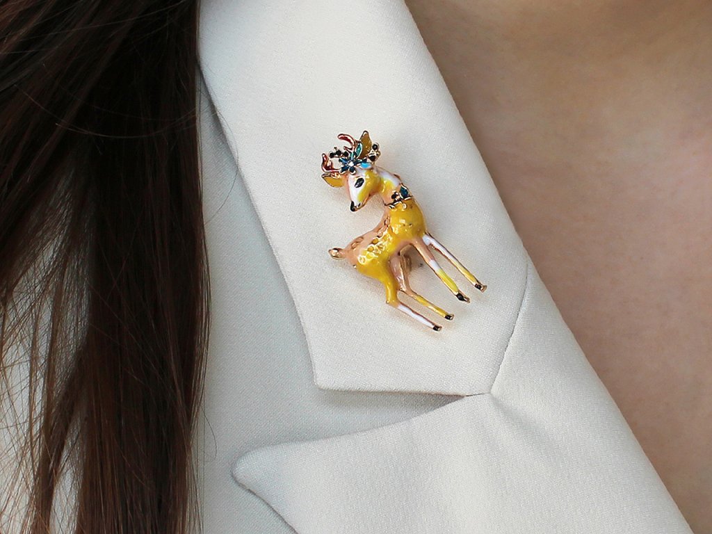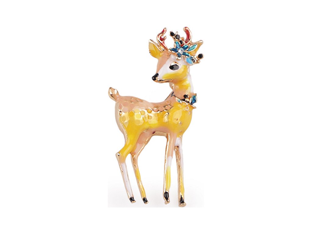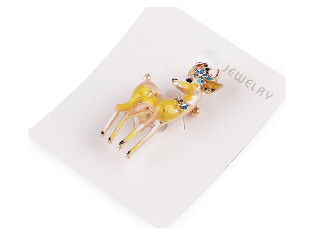 Brož srnky s barevným smaltem osloví všechny milovníky přírody a elegantních doplňků. Jemně zpracované detaily s broušenými kamínky dodávají této broži jedinečný šarm. Srnka vnese harmonii a půvab do každého dne, ať už jdete do práce nebo jen na procházku. Z rubu má brožový špendlík. Můžete ji nosit nejen na oděvech, hodí se i k ozdobení klobouků, tašky či sepnutí šátku. Brož je na plastové kartě, kterou lze zavěsit na prodejní stojany.