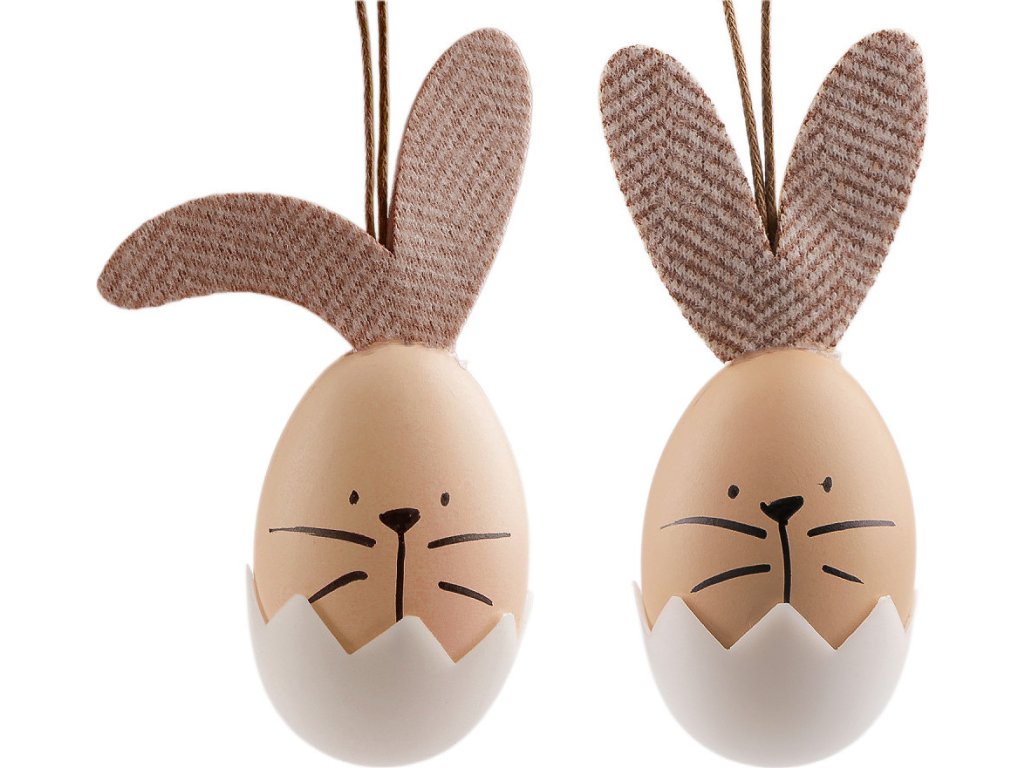 Velikonoční vajíčka v podobě zajíčků vnesou do vašeho domova kouzlo jarních svátků. Jsou lehká a mají poutko, za které je pohodlně zavěsíte na větvičky ve váze, stromky nebo dekorativní věnce.