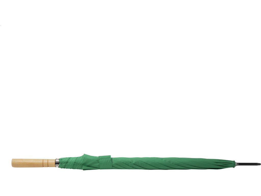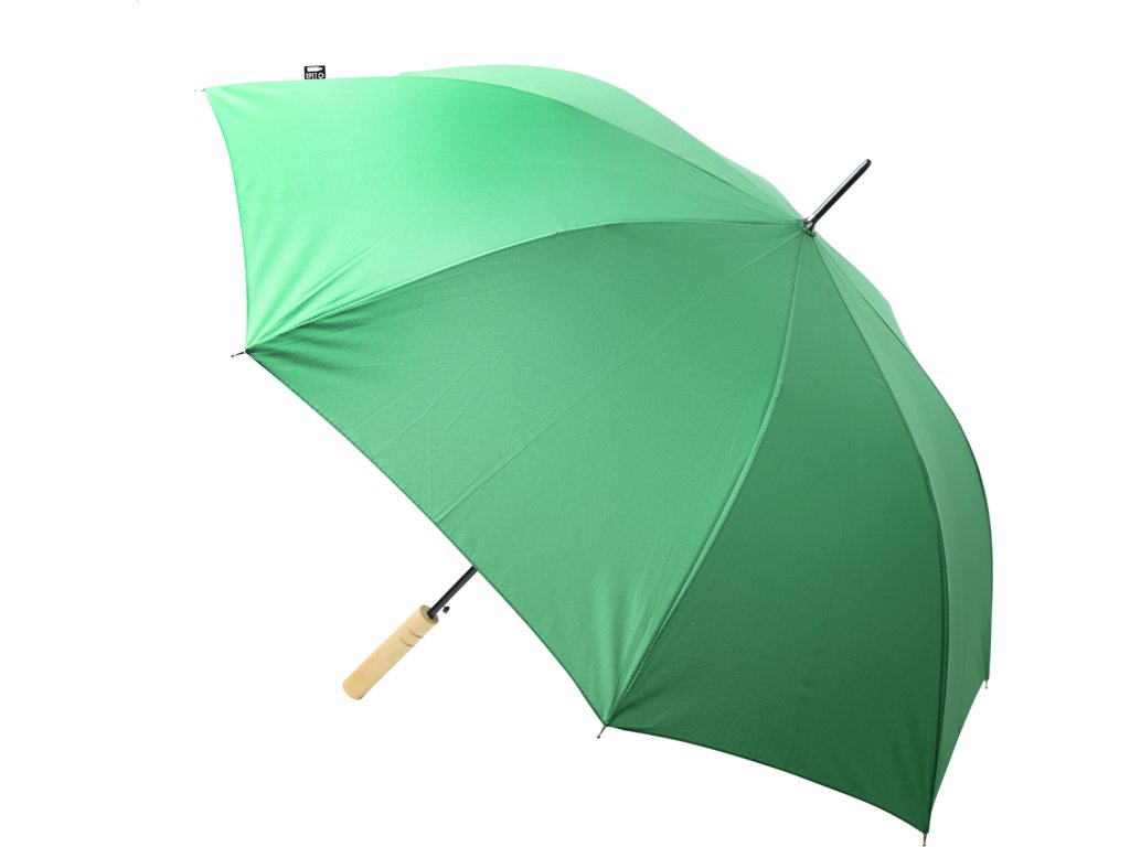 Automatický, větru odolný deštník s 8 panely, dřevěnou rukojetí, kovovým rámem a sklolaminátovými žebry. Recyklovaný 100% RPET pongee 190T, s etiketou s označením RPET.