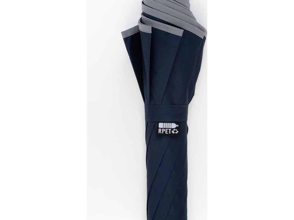 Automatický, větruodolný deštník s 8 panely a reflexním lemem. S kovovým rámem, sklolaminátovými žebry a EVA rukojetí. Pongee 190T RPET. S výrazným štítkem RPET. Pouze pro propagační účely se produkt nekvalifikuje jako osobní ochranný prostředek.