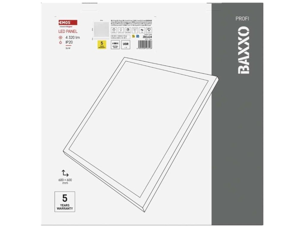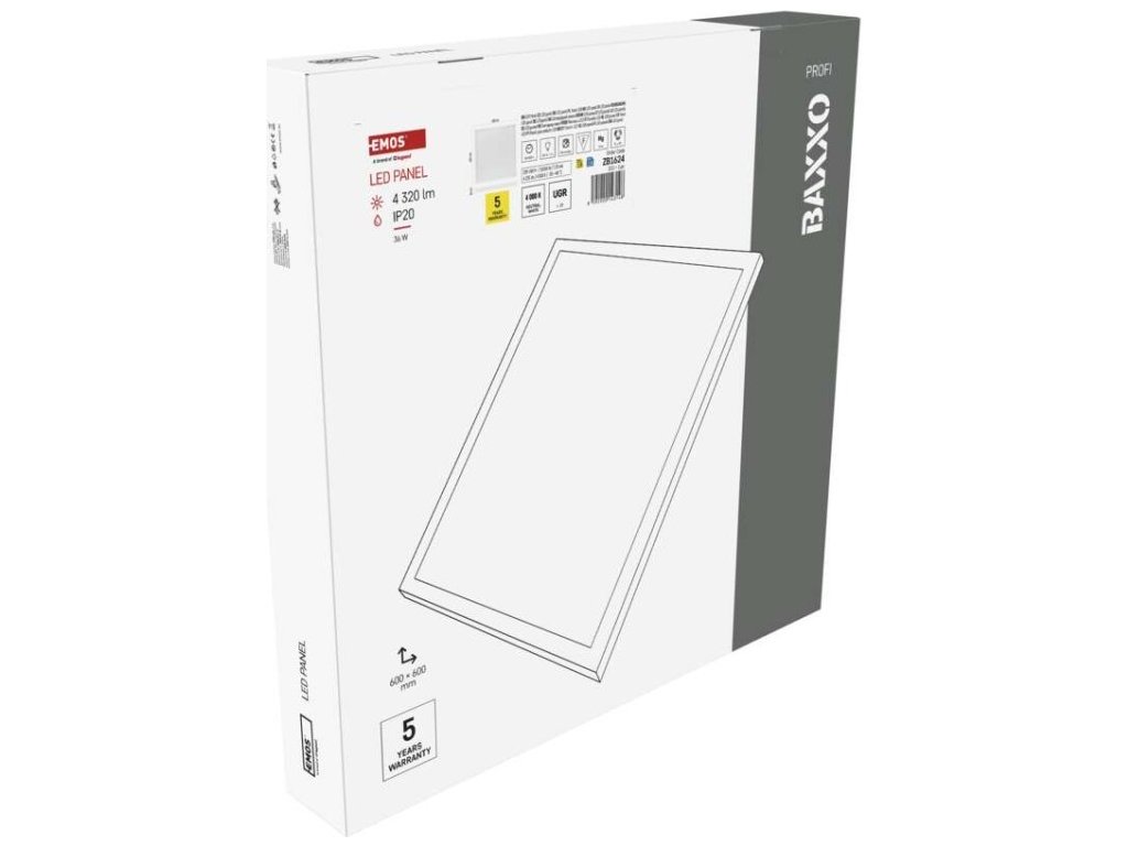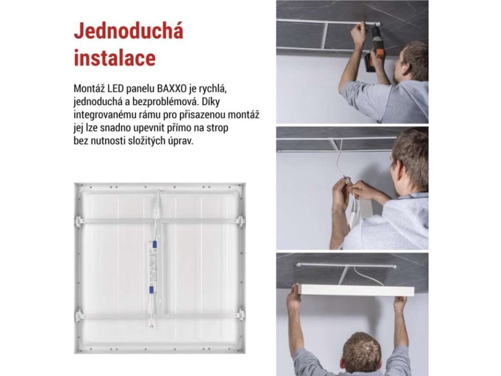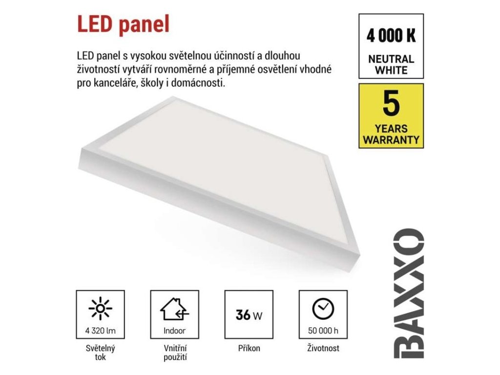 LED panel BAXXO 60×60, čtvercový přisazený bílý, 36W neutr. bílá