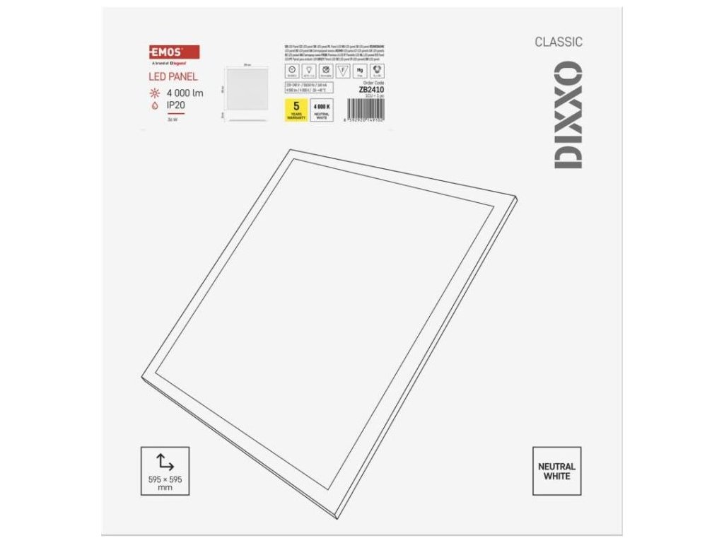 LED panel DIXXO backlit 60×60, čtvercový vestavný bílý, 36W neutr. b.