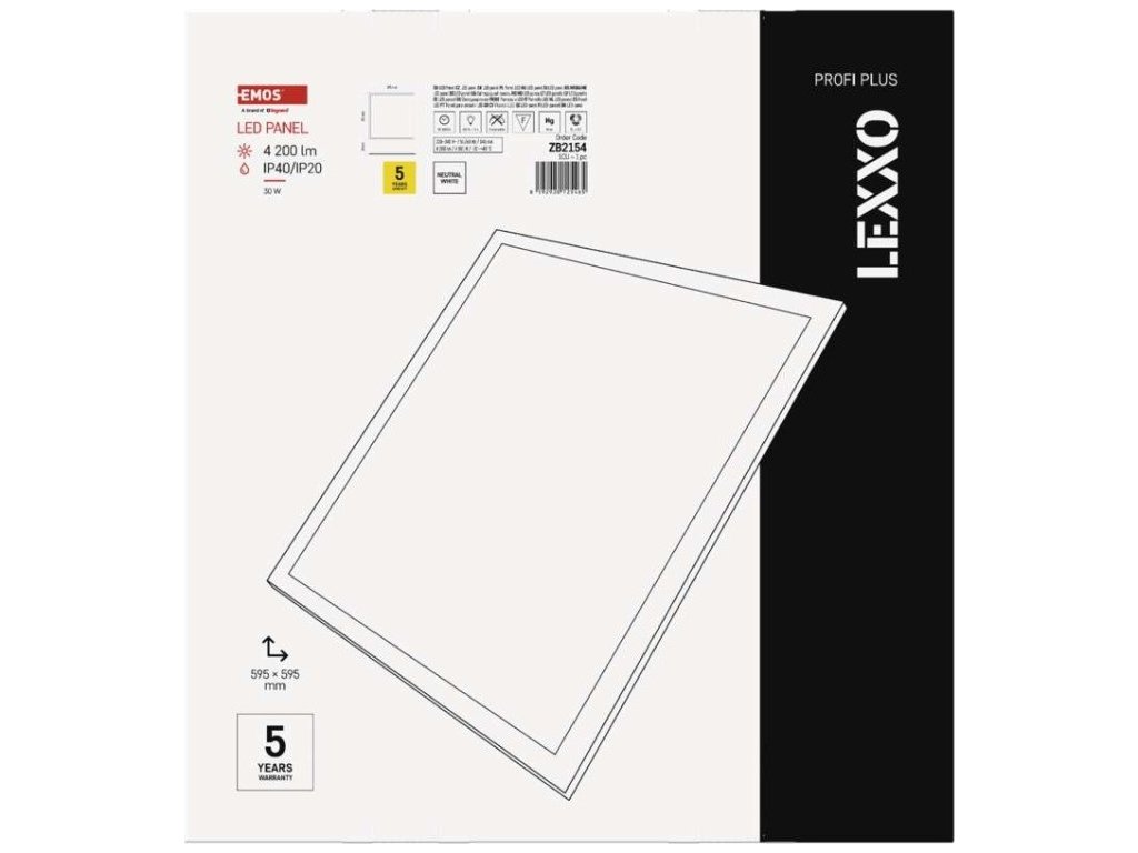 LED panel LEXXO backlit 60×60, čtvercový vestavný bílý, 30W neutr. b.