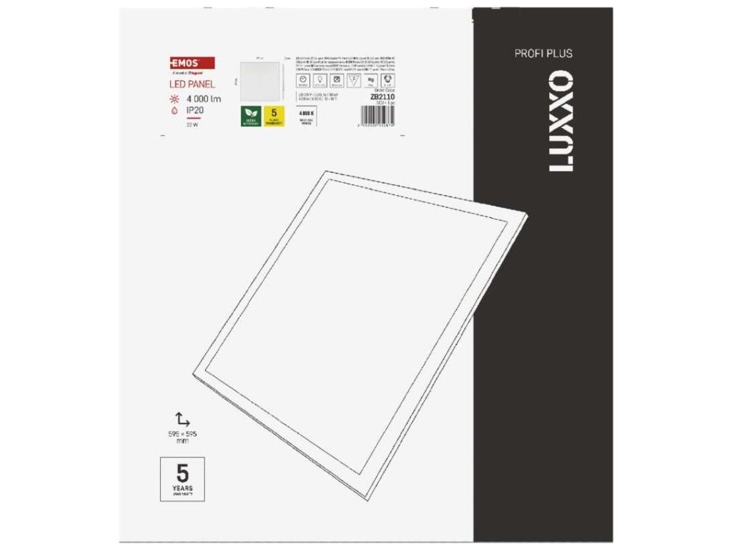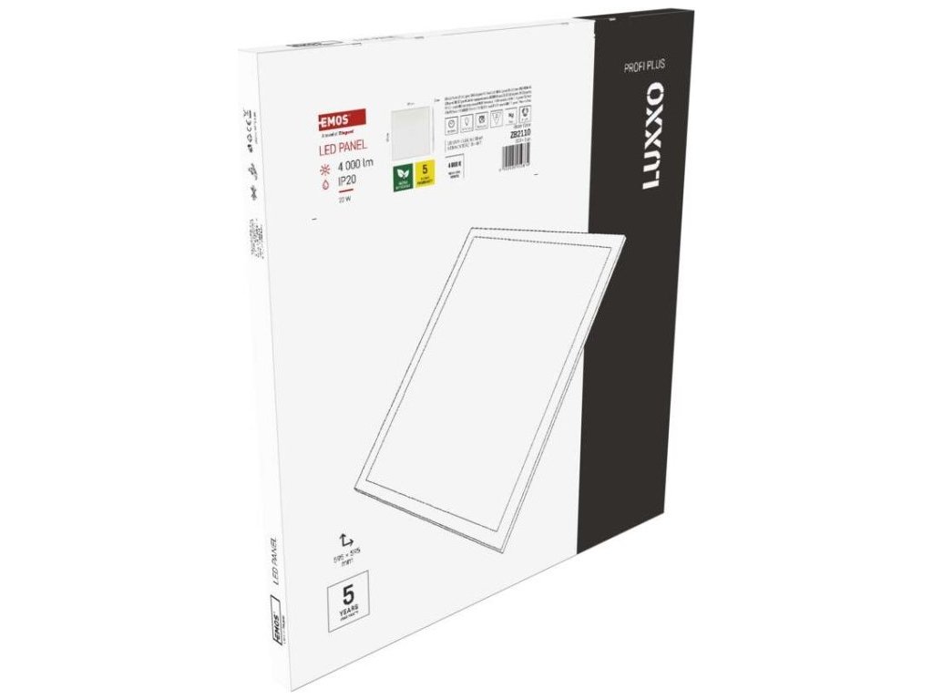 LED panel LUXXO backlit 60×60, čtvercový vestavný bílý, 22W neutr. b.