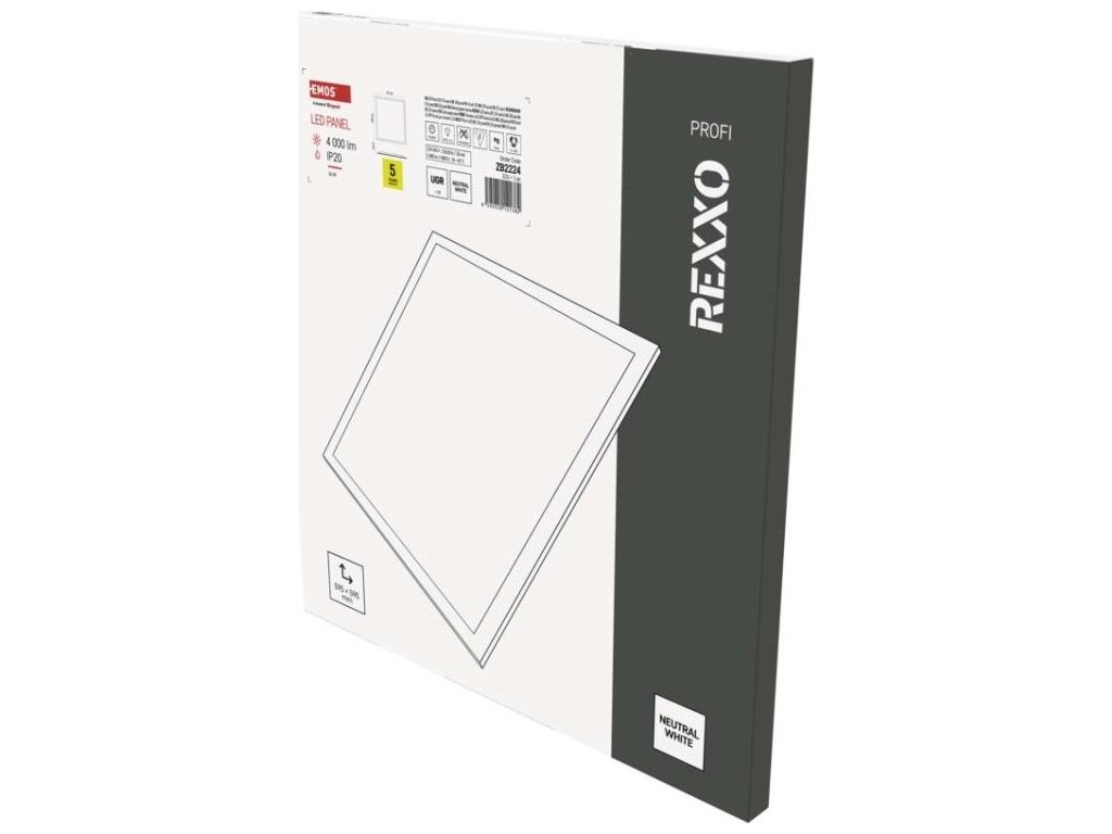 LED panel REXXO backlit 60×60, čtvercový vestavný bílý, 36W neutr. b. UGR