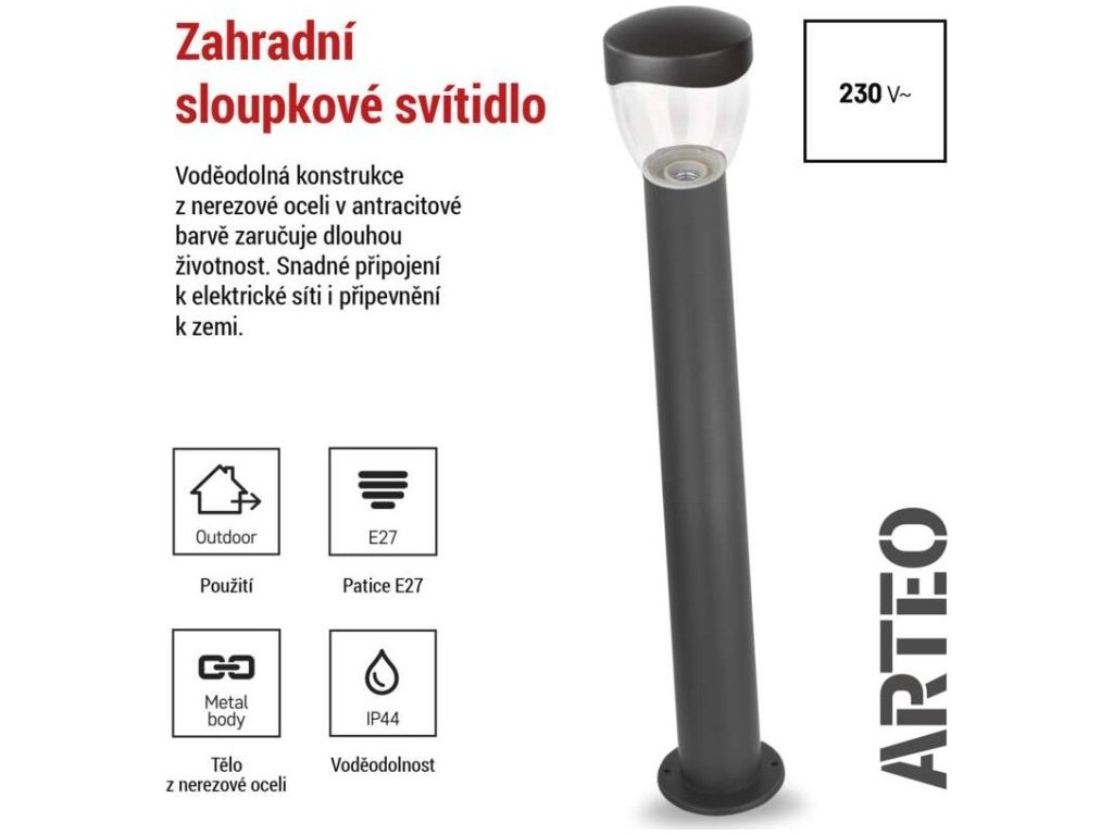 Zahradní sloupkové svítidlo ARTEO, 12 x 12 x 80 cm, 1 x E27, 15 W