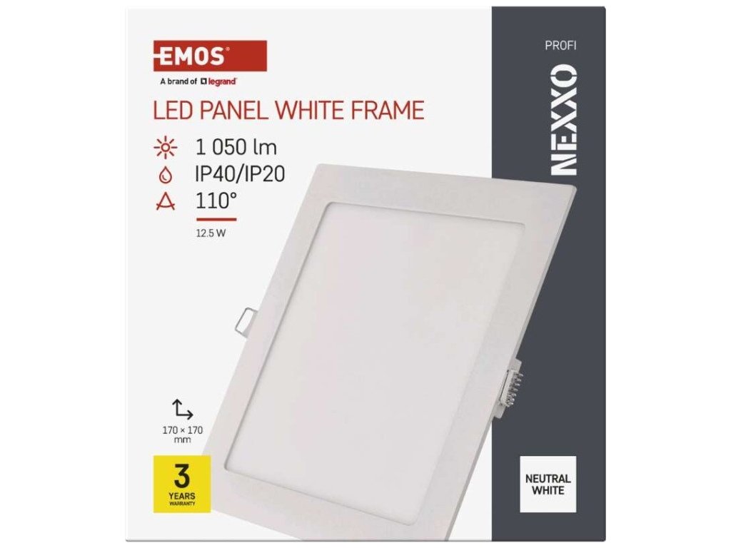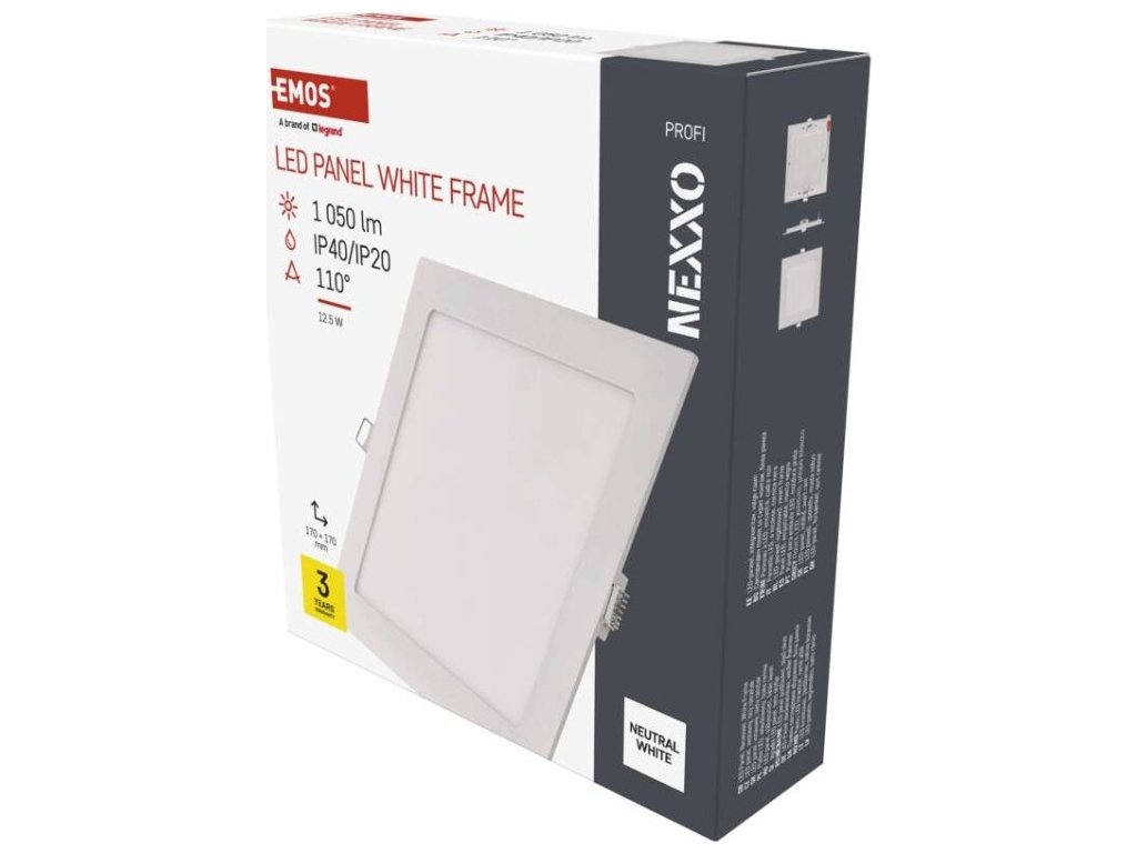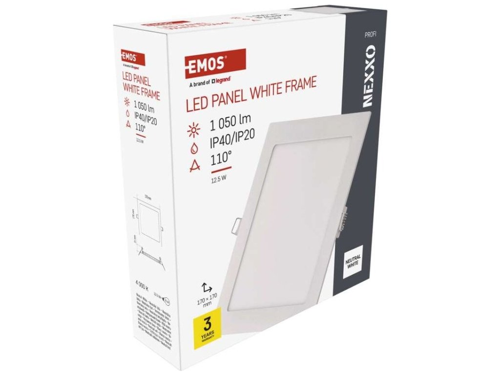 LED vestavné svítidlo NEXXO, čtvercové, bílé, 12,5W, neutrální bílá