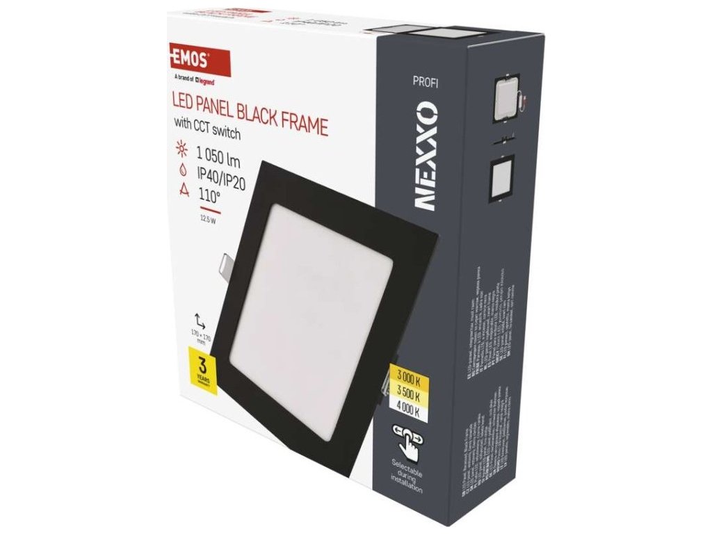 LED vestavné svítidlo NEXXO, čtvercové, černé, 12,5W, se změnou CCT