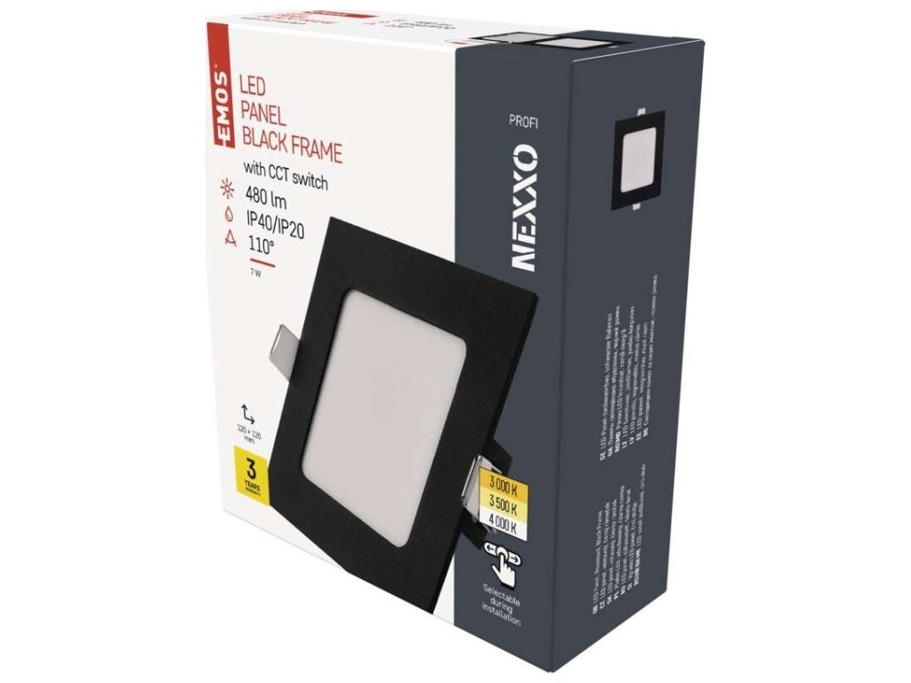 LED vestavné svítidlo NEXXO, čtvercové, černé, 7W, se změnou CCT