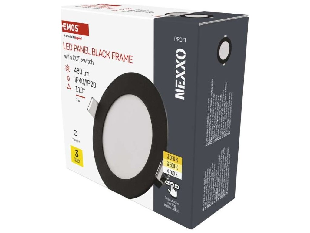 LED vestavné svítidlo NEXXO, kruhové, černé, 7W, se změnou CCT