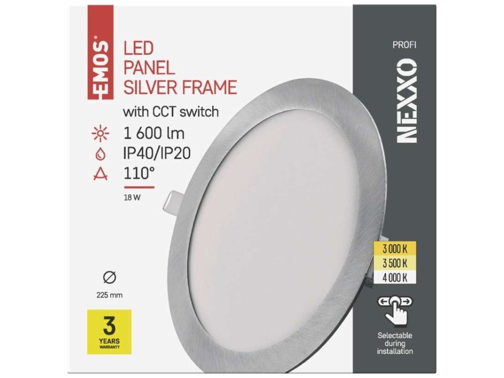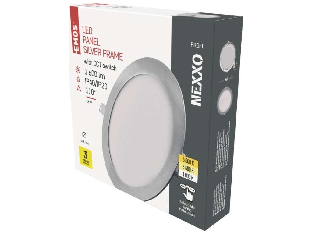 LED vestavné svítidlo NEXXO, kruhové, stříbrné, 18W, se změnou CCT