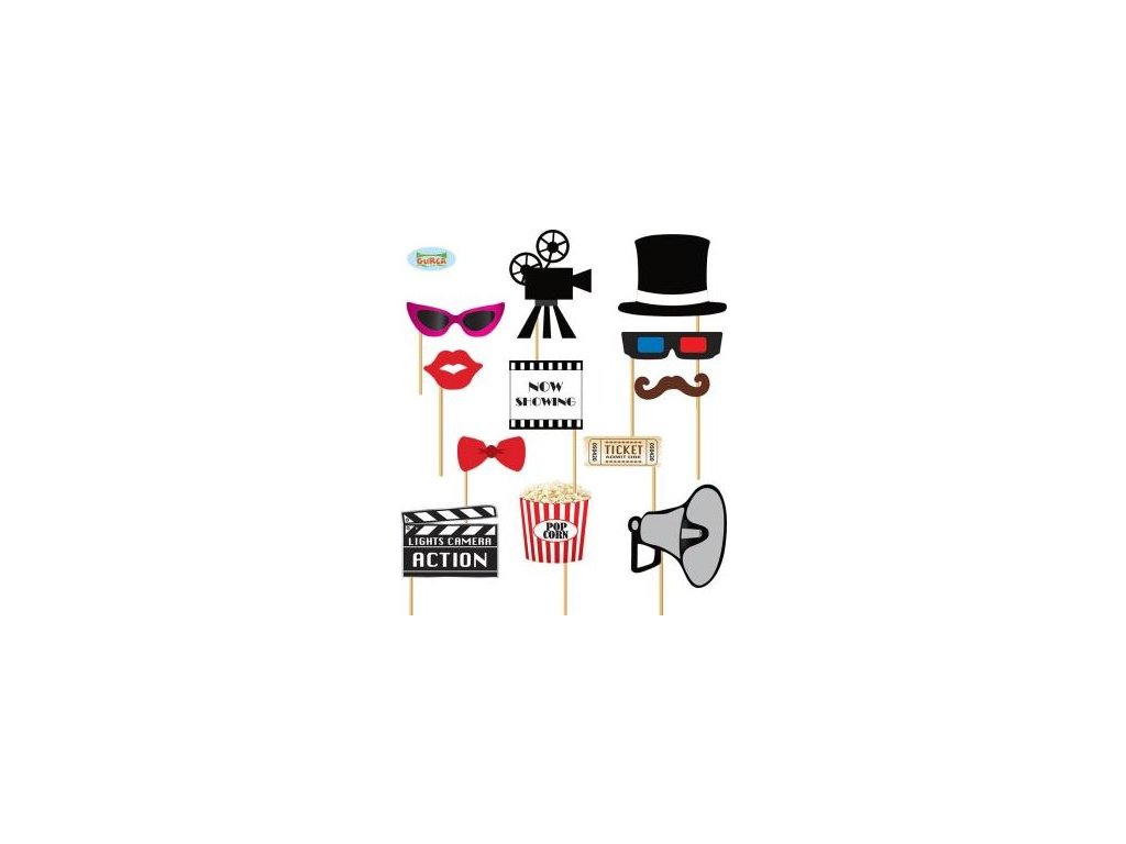 Foto rekvizity na špejli se skvěle hodí do fotokoutku na Vaší filmové párty. V balení naleznete 12 ks foto doplňků.