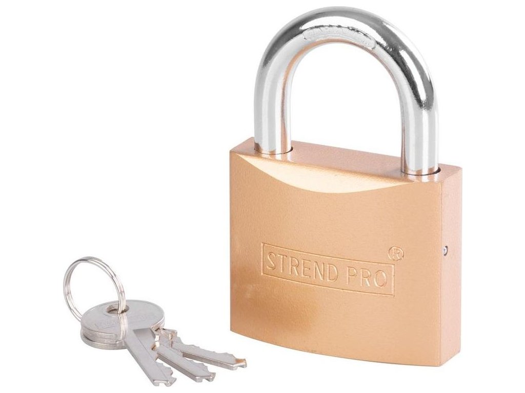 Zámek Strend Pro je určen k uzamykání vrat, dveří a skříní. Je to visací zámek o šířce 63 mm. Součástí jsou také 3 náhradní klíče.