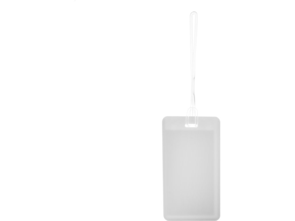 Plastová visačka na zavazadla.