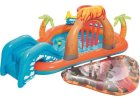 Hrací centrum Bestway s dvěma bazénky a skluzavkou. Oblouk s vestavěným rozstřikovačem. Dva nafukovací kroužky k házení na cíl. Dvě dráhy na míčky, včetně 6 míčků na hraní. V...