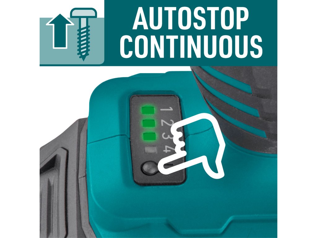 Inteligentní režimy AUTOSTOP & CONTINUOUS: Unikátní funkce zpětného chodu pro kontrolované povolování nebo nepřetržitý provoz.