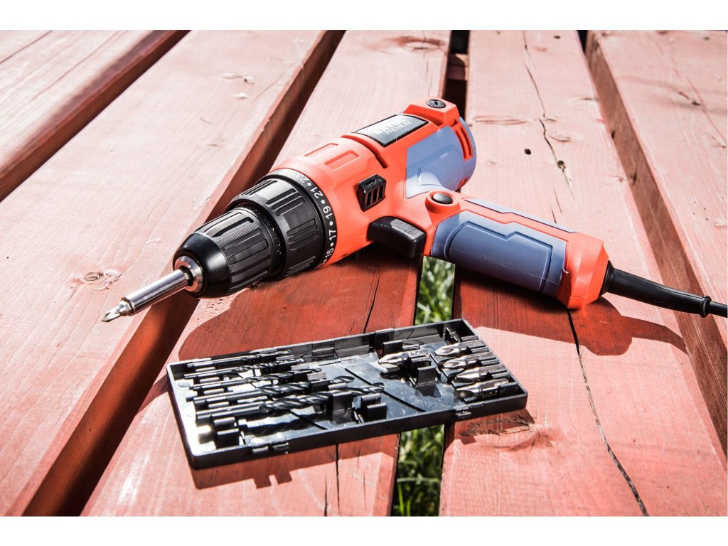 Elektrický dvourychlostní vrtací šroubovák je určen k vrtání bez příklepu do dřeva a kovu a k utahování nebo povolování šroubových spojů. Vrtací šroubovák v sobě spojuje velký utahovací moment standardního vrtacího aku šroubováku (akuvrtačky) s výdrží a stabilním výkonem elektrického nářadí napájeného z elektrické sítě. Elektrický vrtací šroubovák napájený z elektrické sítě je vhodný pro delší práce v dosahu elektrické zásuvky. Díky absenci akumulátoru a nabíječky tak lze mít výhody silné aku vrtačky za výrazně nižší cenu.