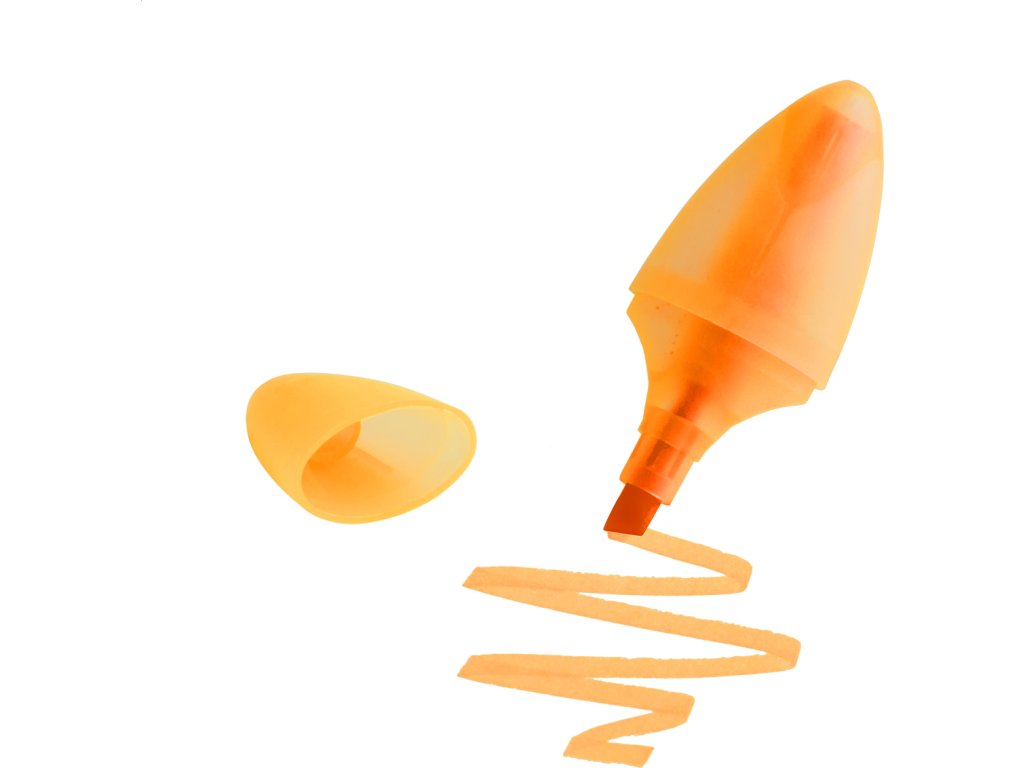 Zvýrazňovač ve tvaru kapsle v průsvitném plastovém obalu.