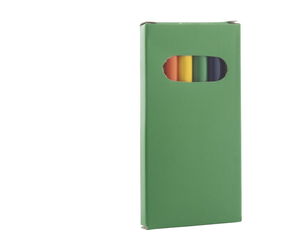 Dřevěné pastelky (6 ks) v barevné papírové krabičce.