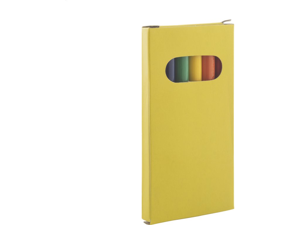 Dřevěné pastelky (6 ks) v barevné papírové krabičce.