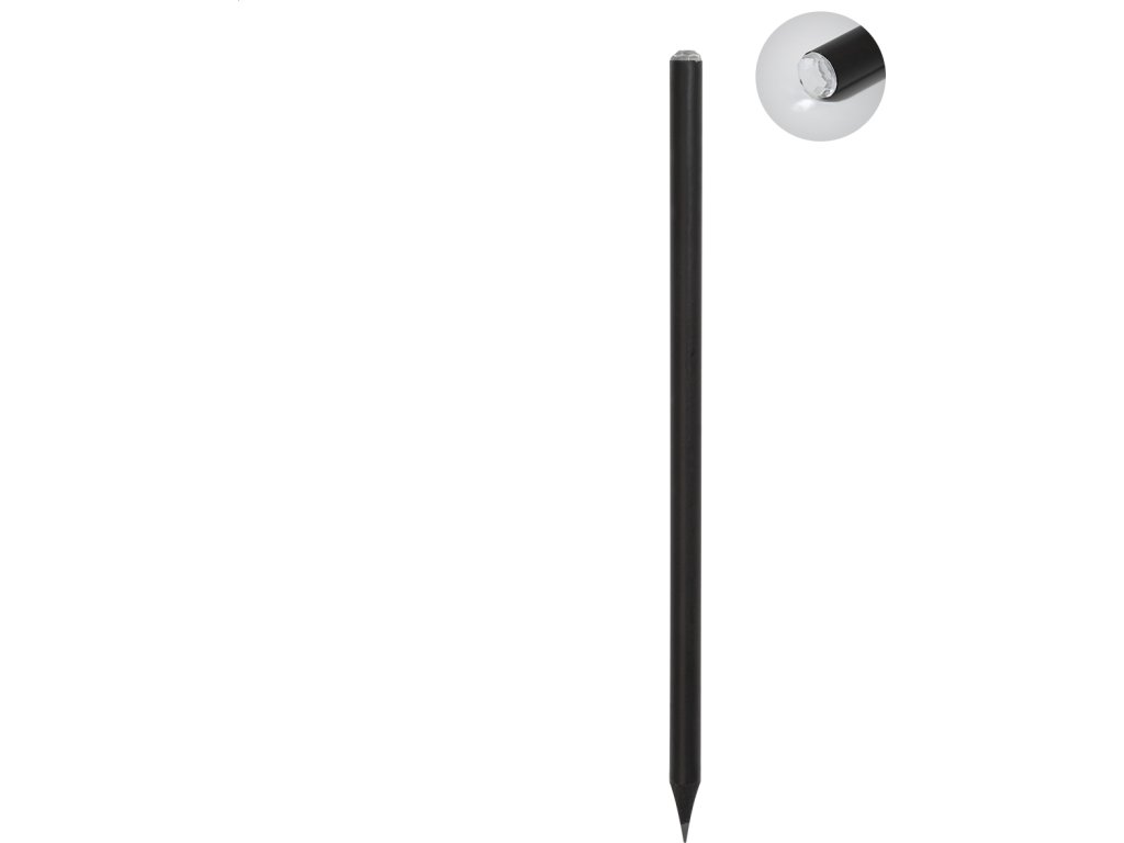 Černá dřevěná tužka s akrylovým ozdobnými kamínky. Ořezaná, třída HB.