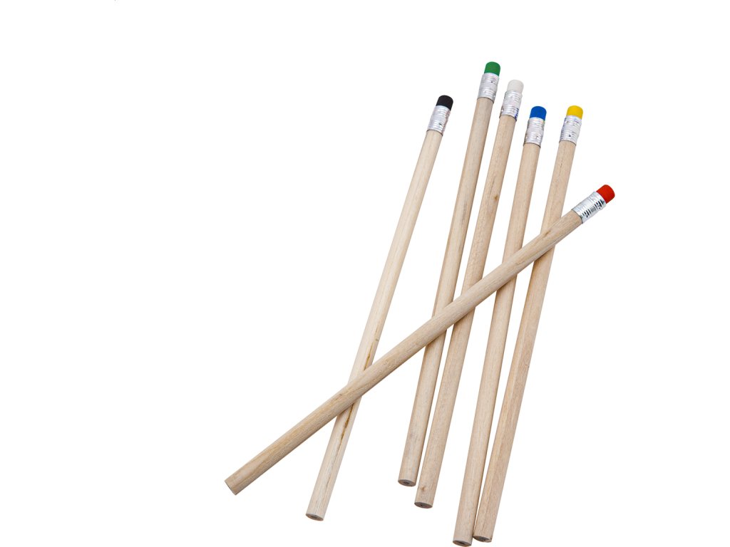 Tužka z přírodního dřeva s barevnou gumou. Dodává se neořezaná.