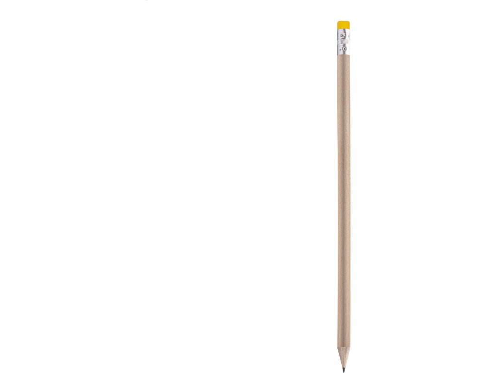 Tužka z přírodního dřeva s barevnou gumou. Dodává se neořezaná.