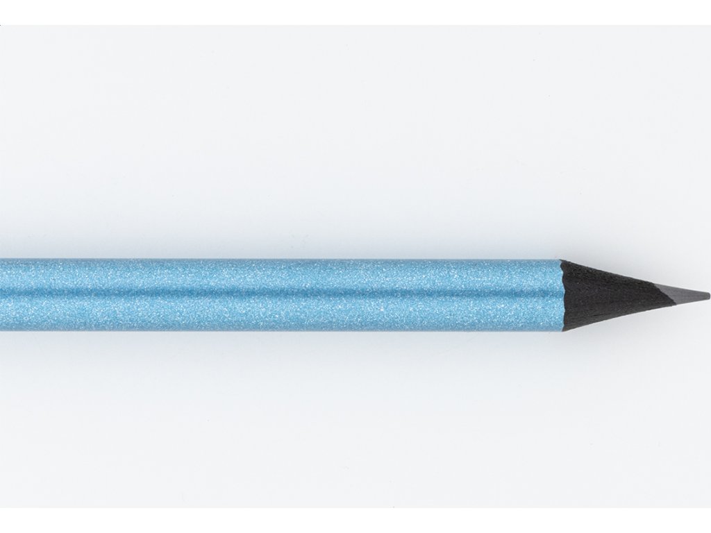 Černá dřevěná tužka v metalickém provedení, s černou gumou. Ořezaná, třída HB.