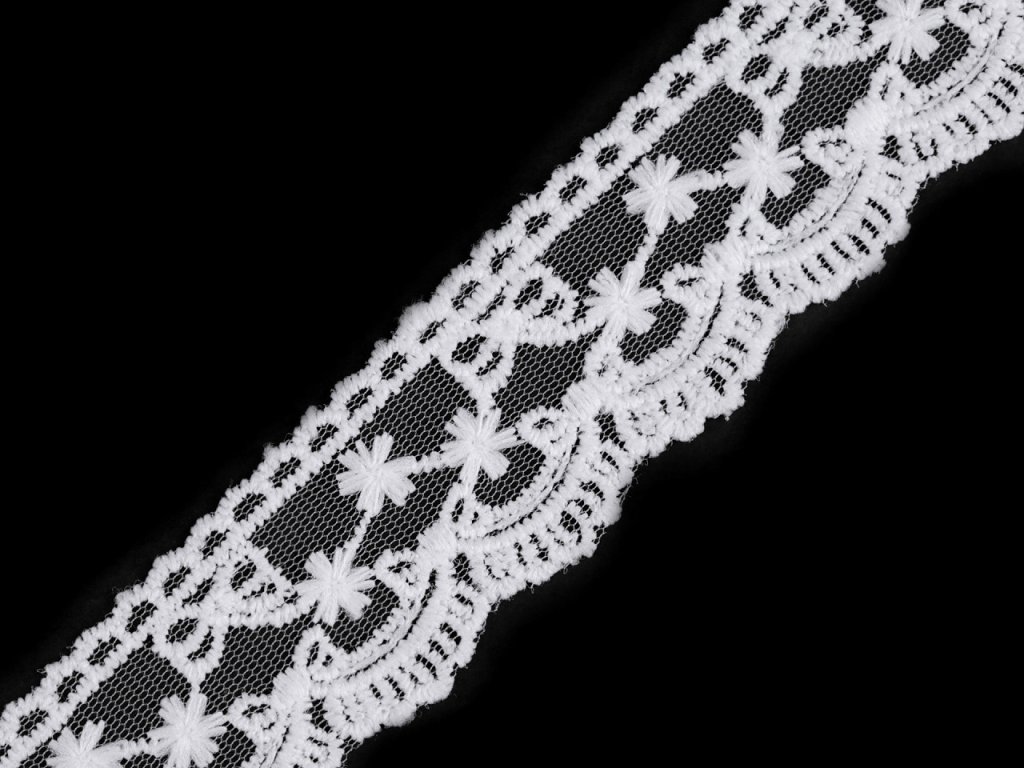 Krajka s výšivkou je vhodná k ozdobení halenek, společenských šatů nebo sukní. Vynikne také na dekoračních polštářích, slavnostním prostírání, ubrusech a svatebních dekoracích.