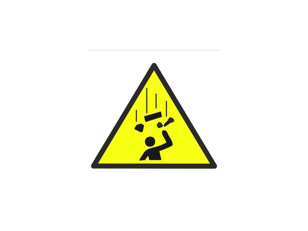 Bezpečnostní tabulka upozorňuje na možný pád předmětů z výšky. Varuje tak před nebezpečím úrazu nebo poškozením zdraví z této příčiny.