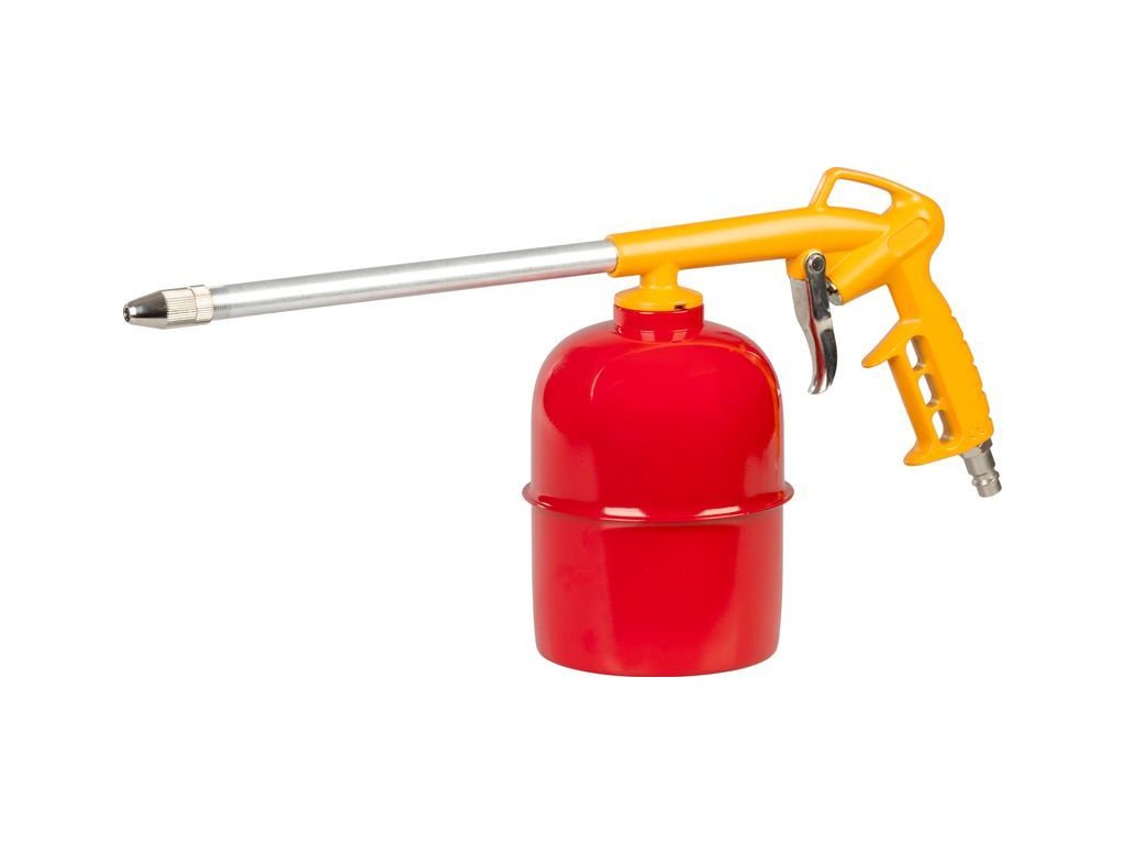 Rozprašovací pistole se sací nádobou ke kompresorům s 300 mm prodloužením a objemem nádoby 900 cc je vhodná pro mytí, údržbu, čištění či antikorozní ošetřování.