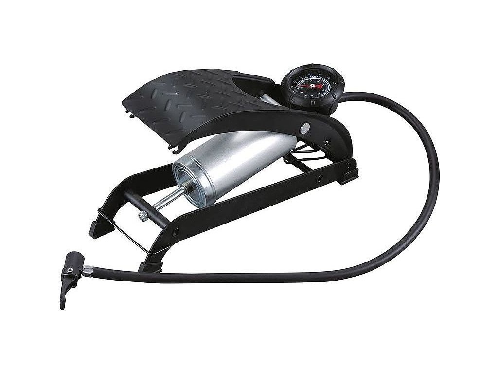 Nožná pumpa s manometrom s odchýlkou +-1PSI, s tlakom 7 barov.Hadica dosahuje 60 cm.Poslúži vám nielen na cestách pri nafúknutí kolesa bicykla,motorky, auta, ale aj na kempingu.Navyše má protišmykový pedál.