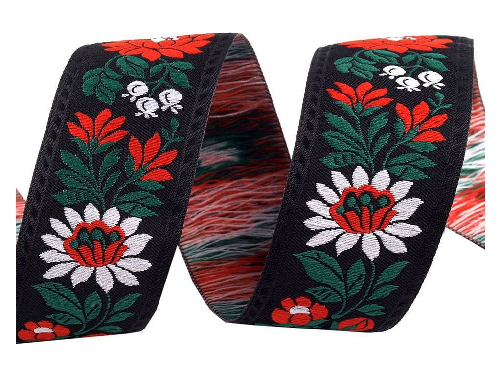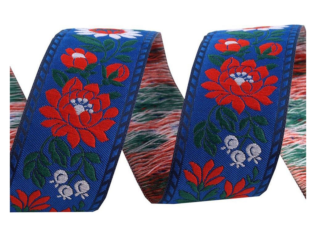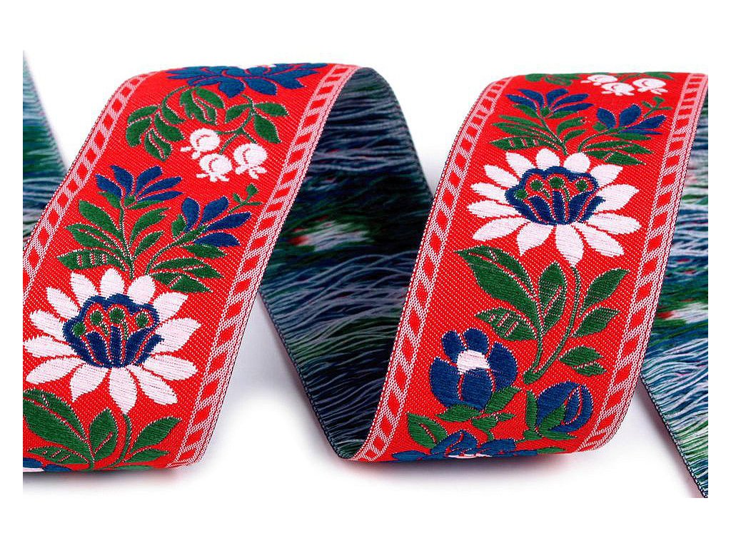 Krojovou vzorovku můžete použít nejen ke zdobení krojů, ale i běžných oděvů, prádla, bytových textilií, hraček a upomínkových předmětů. Použití je variabilní. Stuhy vyniknou svou barevností na látce různého dezénu a barvy. Jsou tkány na jehlových stavech a vyrábějí se již jen v materiálu polyester! Šíře stuhy je 35 mm. Dodáváme v návinu po 25 m.