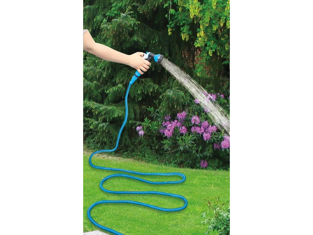 Samopredlžovacia a zasúvacia hadica Aquacraft je ideálne pre všetky aplikácie. Ľahká, praktická, robustná a všade použiteľná. Balenie obsahuje pištoľ ( 7 úrovni nastavenia postreku ) s konektormi. Počas používania, ak je naplnená vodou, sa natiahne na približne 2-násobok svojej dĺžky.