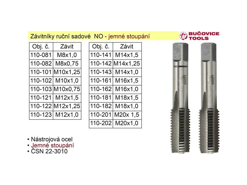 Jemné sadové závitníky 1°a 2° vyrobené z nástrojové oceli (NO) od Českého výrobce Bučovice Tools .