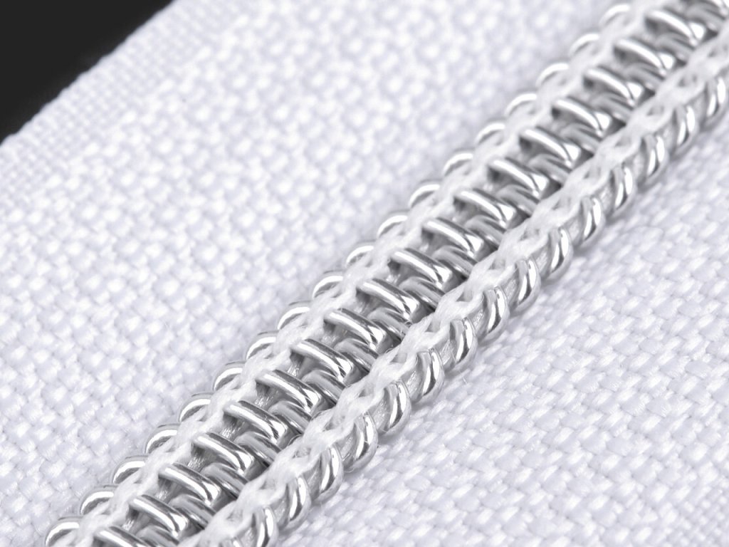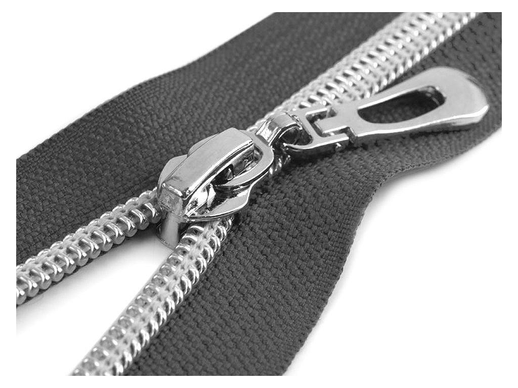 Dělitelný spirálový zip se stříbrnými zoubky využijete jako zapínání na bundy, kabáty, mikiny i sportovní tašky. Jezdec zipu je z nemagnetického kovu, očko, které ho spojuje se zipem je magnetické.