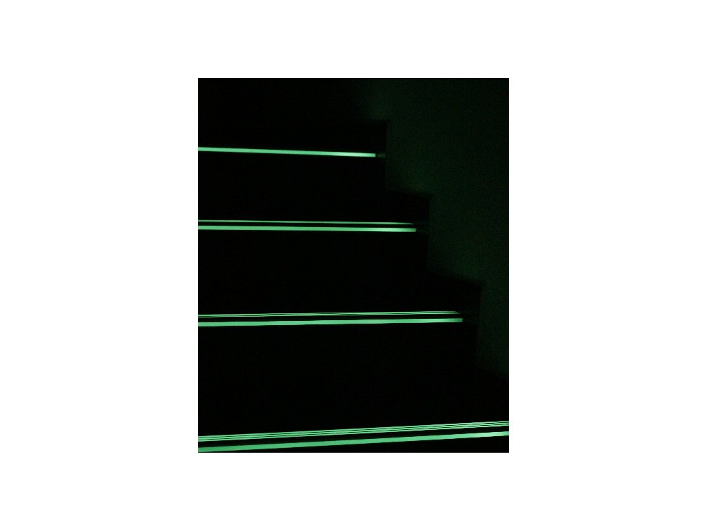 Vysoce kvalitní fotoluminiscenční materiál aplikovaný do drážek významně zvyšuje orientaci na schodišti při snížené viditelnosti.